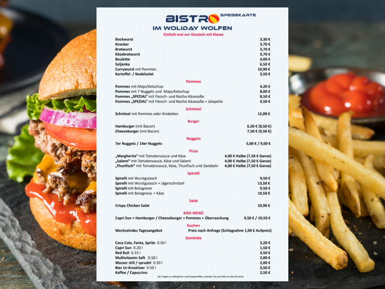 Seit dem 01. April hat das Woliday Wolfen einen neuen Bistro-Betreiber. Sie können sich auf abwechslungsreiche Speisen freuen. Hier ist für jeden Geschmack etwas dabei. Kommen Sie vorbei und lassen Sie sich verzaubern.